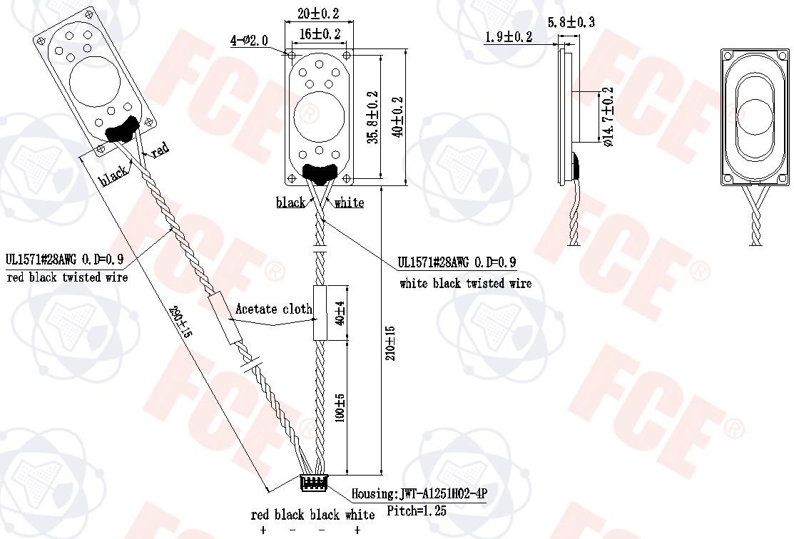 2040CP04M2-20(GP) - Altavoz 4Ω 2W