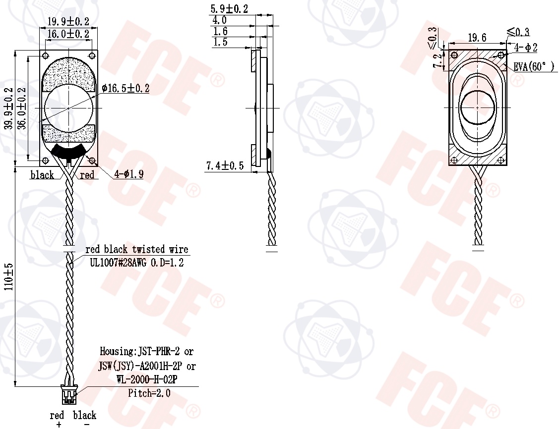 2040CP04P6-11(GP) - Altavoz 4Ω 2W