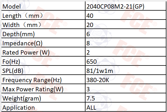 2040CP08M2-21(GP) - Altavoz 8Ω 2W