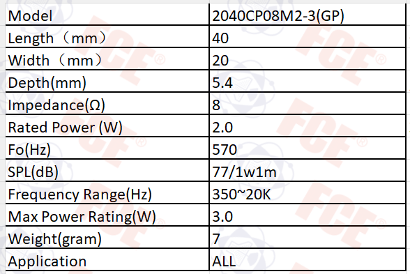 2040CP08M2-3(GP) - Altavoz 8Ω 2W