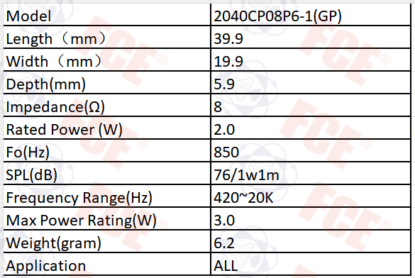 2040CP08P6-1(GP) - Altavoz 8Ω 2W