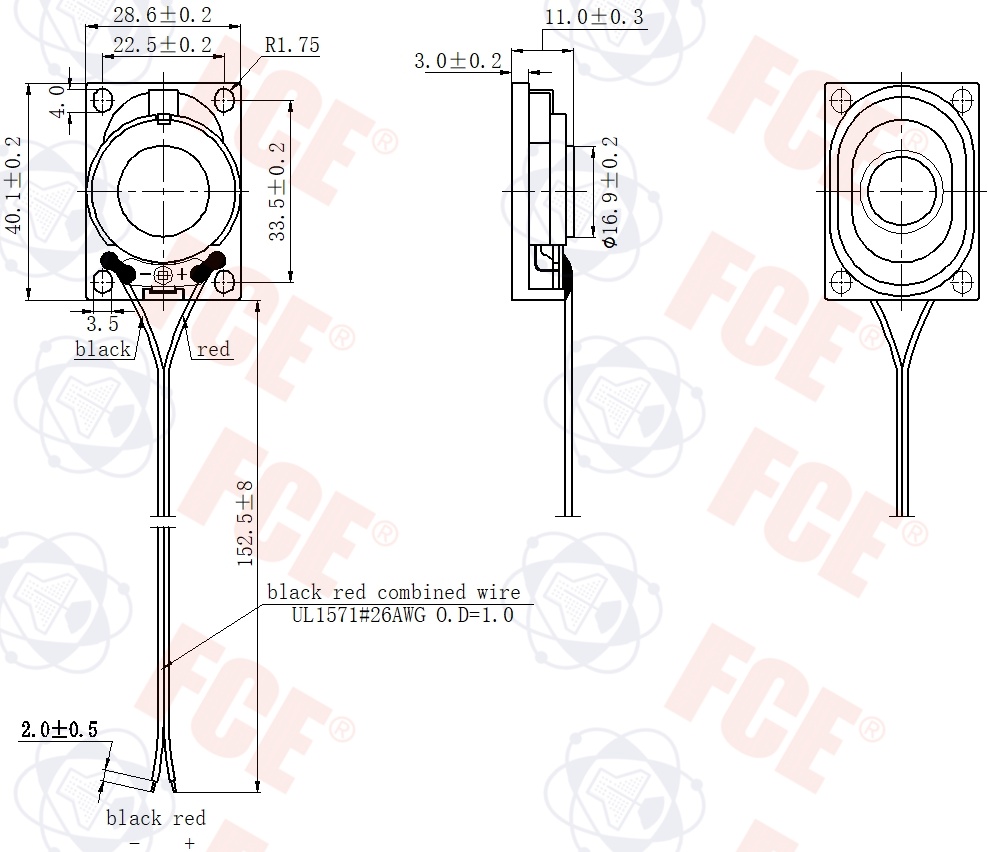 2840CP04P1-21(GP) - Altavoz 4Ω 3W