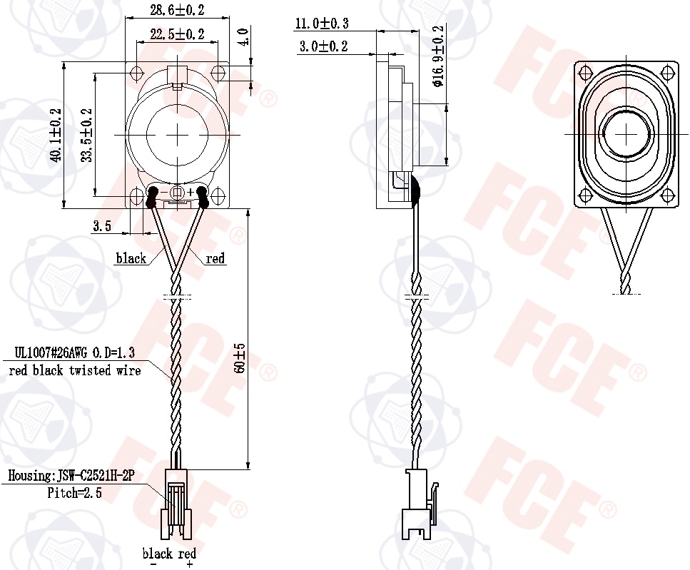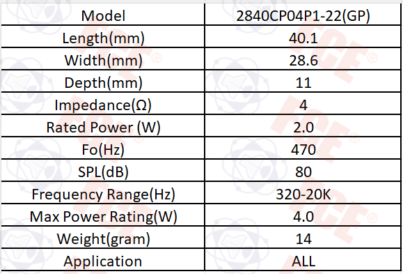 2840CP04P1-22(GP) - Altavoz 4Ω 3W