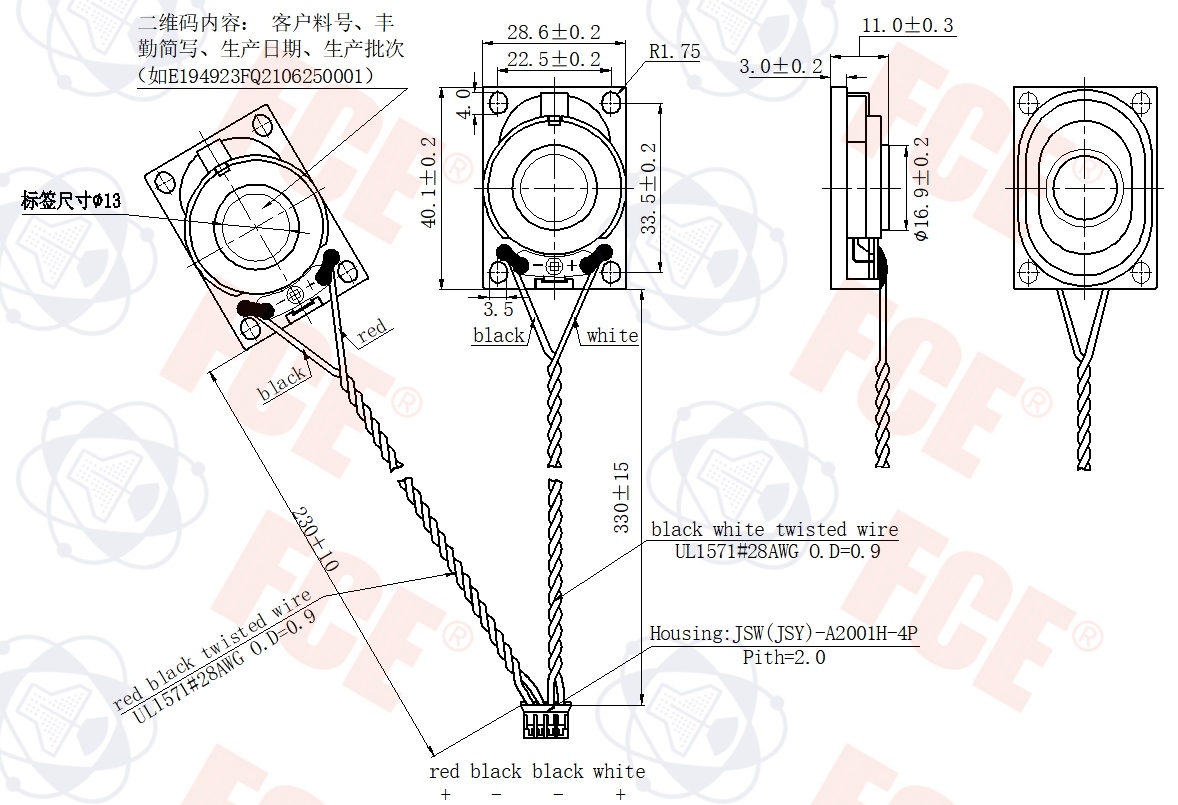 2840CP08P1-76(GP) - Altavoz 8Ω 3W