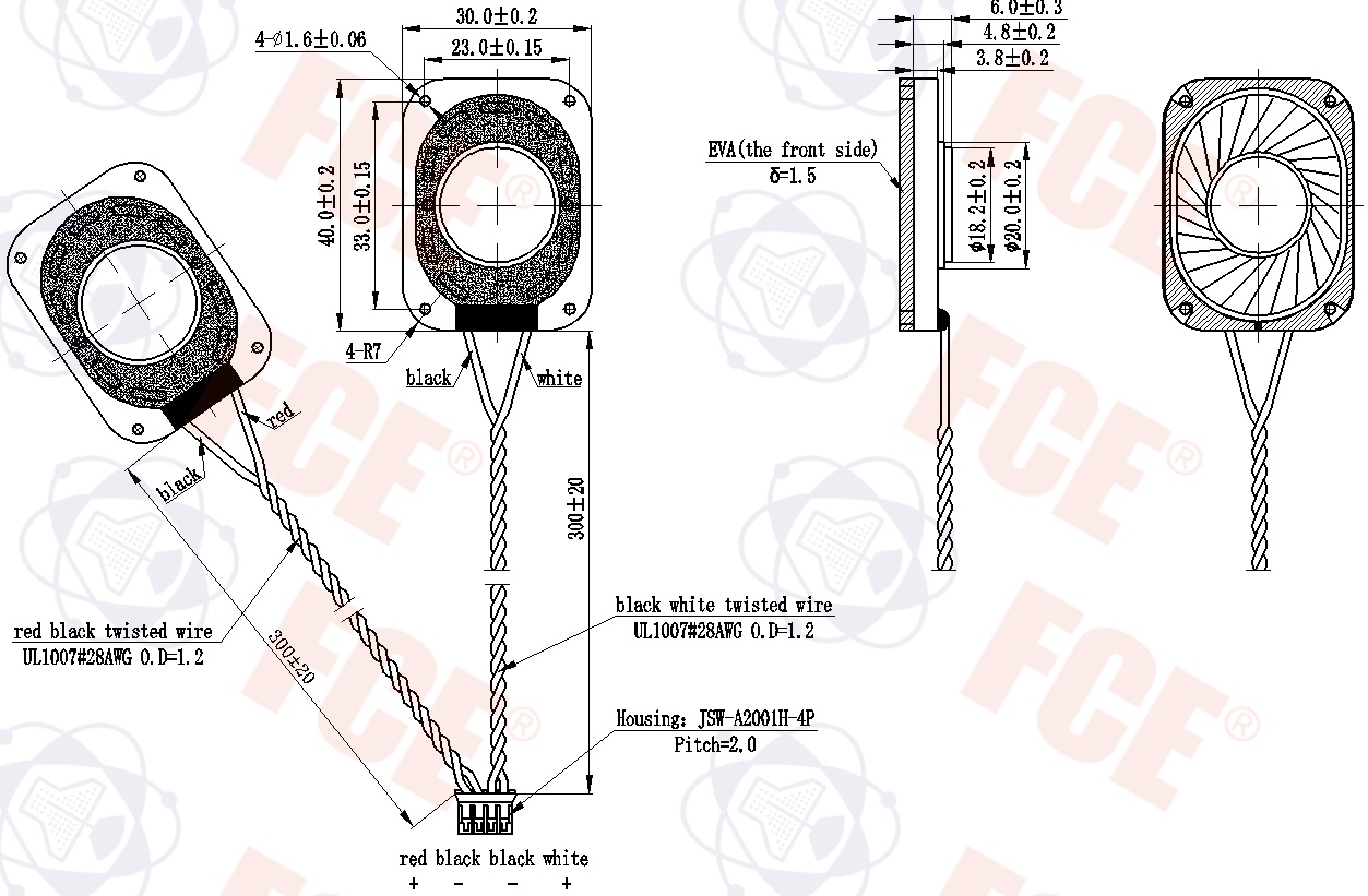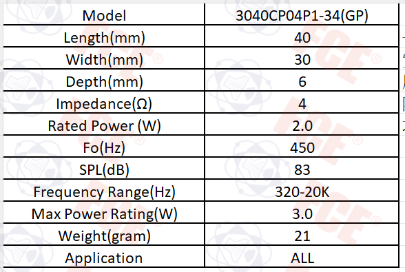 3040CP04P1-34(GP) - Altavoz 4Ω 2W