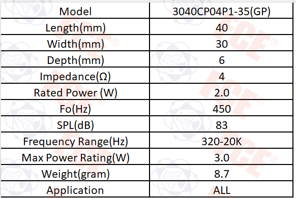 3040CP04P1-35(GP) - Altavoz 4Ω 2W