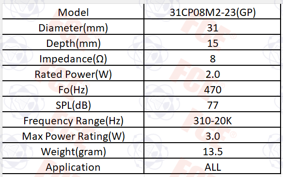 31CP08M2-23(GP) - Altavoz 8Ω 2W