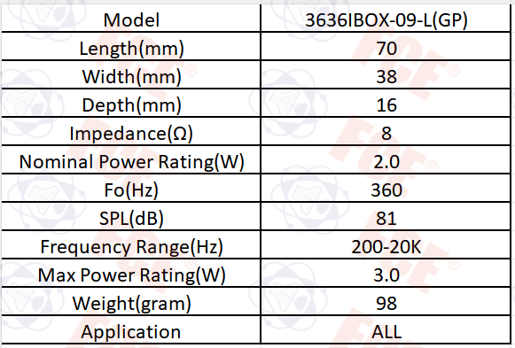 3636IBOX-09-L(GP) - Altavoz 8Ω 2W