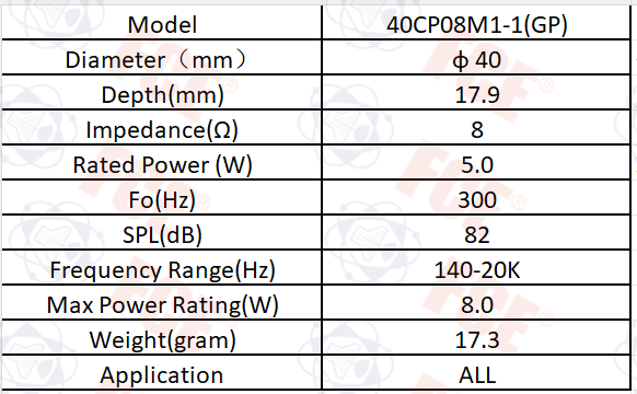 40CP08M1-1(GP) - Altavoz 8Ω 5W