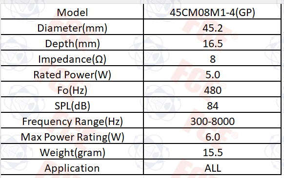 45CM08M1-4(GP) - Altavoz de 8Ω y 5W