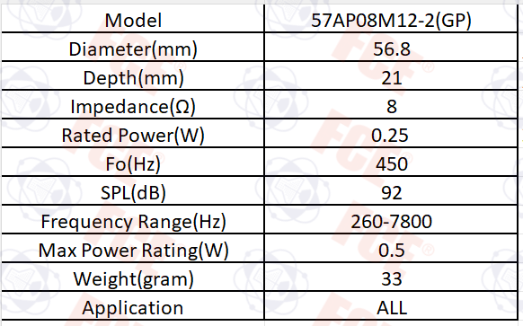 57CM08P(GP) - Altavoz 8Ω 3W