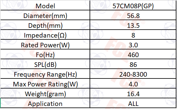 57CM08P(GP) - Altavoz 8Ω 3W