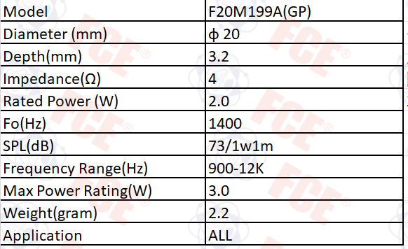 F20M05B(GP) - Altavoz de 8Ω 0,5W