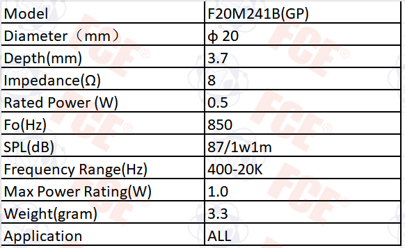 F20M241B(GP) - Altavoz de 8Ω 0,5W