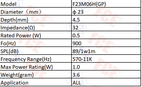 F23M06H(GP) - Altavoz de 32Ω 0,5W