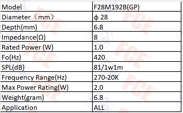 F28M192B(GP) - Altavoz 8Ω 1W