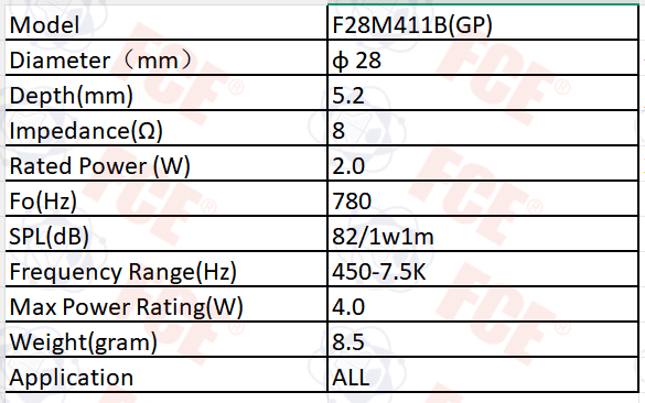 F28M411B(GP) - Altavoz 8Ω 2W