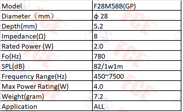 F28M58B(GP) - Altavoz de 8Ω y 2W