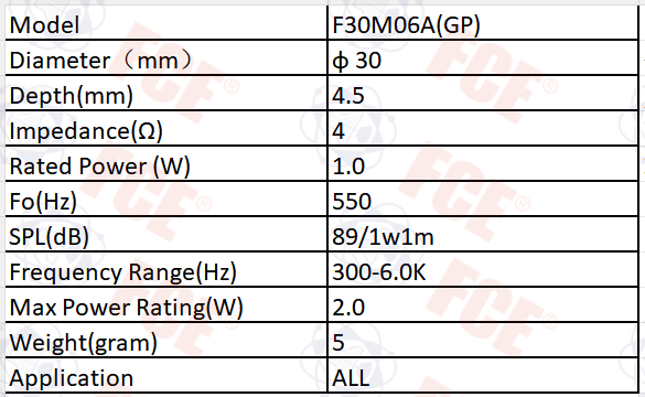 F30M06A(GP) - Altavoz 4Ω 1W