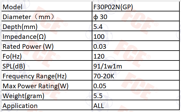 F30P02N(GP) - Altavoz de 100Ω 0,03W