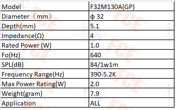 F40M303B(GP) - Altavoz de 8Ω 0,5W