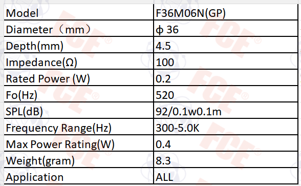 F36M06N(GP) - Altavoz de 100Ω 0,2W