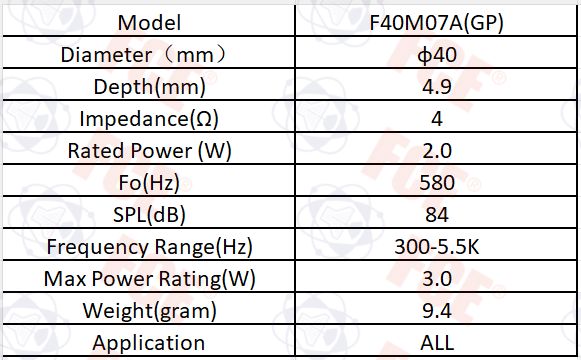 F40M07A(GP) - Altavoz 4Ω 2W