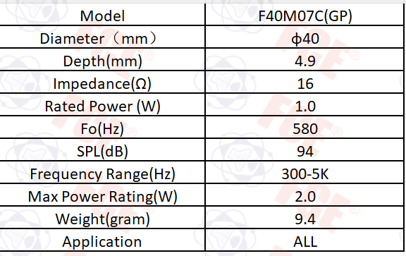 F40M303B(GP) - Altavoz de 8Ω 0,5W