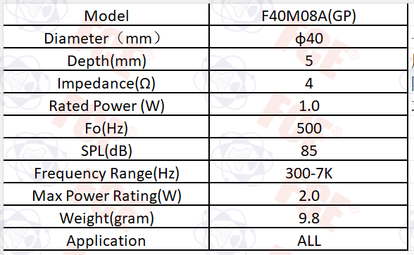 F40M08A(GP) - Altavoz 4Ω 1W