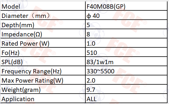 F40M303B(GP) - Altavoz de 8Ω 0,5W