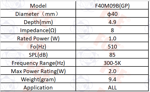 F40M303B(GP) - Altavoz de 8Ω 0,5W