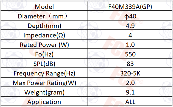 F40M339A(GP) - Altavoz 4Ω 1W