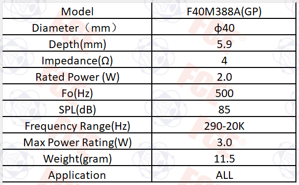 F40M380B(GP) - Altavoz de 8Ω 0,5W
