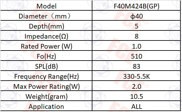 F40M380B(GP) - Altavoz de 8Ω 0,5W