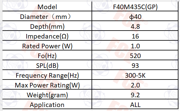 F40M435C(GP) - Altavoz 16Ω 1W