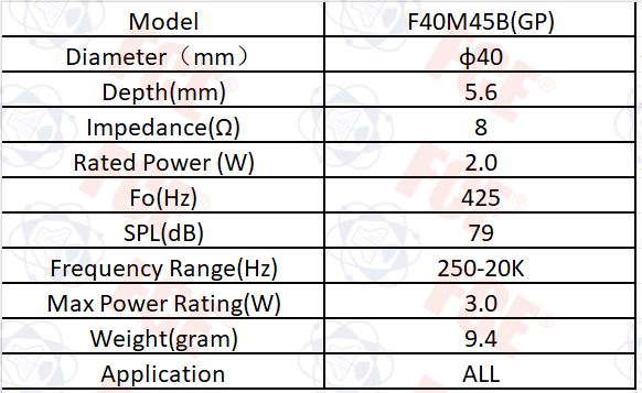F40M303B(GP) - Altavoz de 8Ω 0,5W