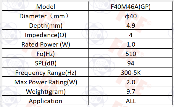 F40M46A(GP) - Altavoz 4Ω 1W