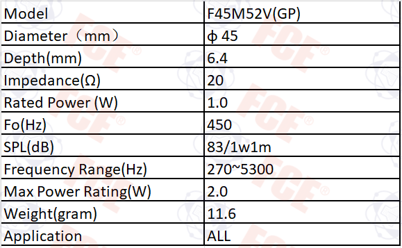 F45M52V(GP) - Altavoz 20Ω 1W