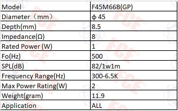 F45M66B(GP) - Altavoz 8Ω 1W
