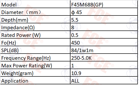 F45M68B(GP) - Altavoz de 8Ω 0,5W