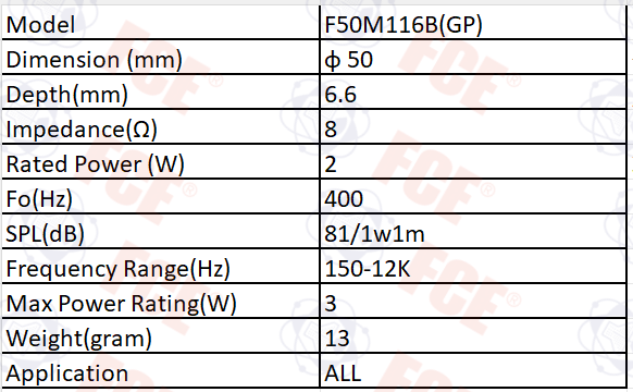 F50M116B(GP) - Altavoz 8Ω 2W