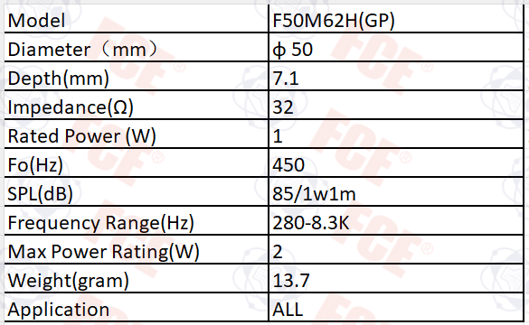 F50M62H(GP) - Altavoz 32Ω 1W